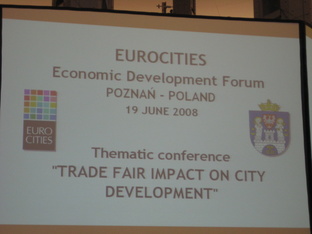 Osallistuin kesäkuussa (juhannuksena!) Eurocities -kaupunkijärjestön taloudellinen kehitys -foorumin (EDF) kokoukseen kansainvälisistä messuistaan tunnetussa Poznanin kaupungissa Puolassa. Yleisen foorumin työkokouksen lisäksi osallistuin Lyonin kaupungin vetämän klusteri -työryhmän kokoukseen. Kokousten yhteydessä järjestettiin myös messuja koskeva konferenssi, jonka teemana oli messujen merkitys kaupunkien kehitykselle. Seuraava EDF -kokous järjestetään Berliinissä marraskuussa 2008.